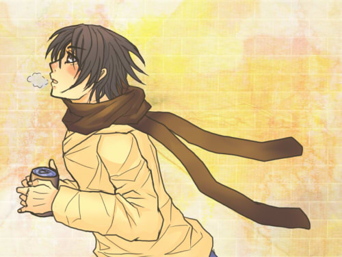 冷えた手を暖かい缶ジュースで温めながら。
